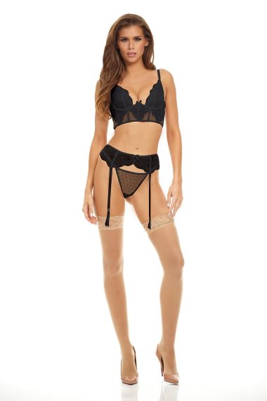 BOMBSHELL BOUDOIR EXPOSED WIRE 3 PC SET BLACK, L