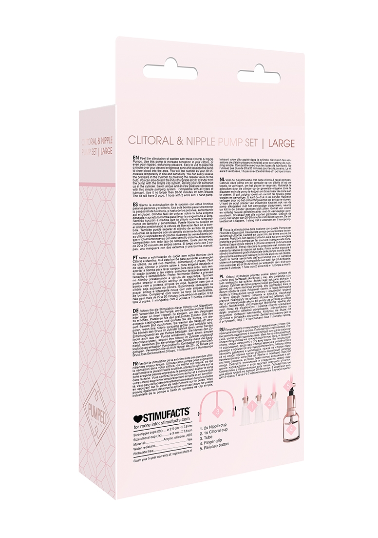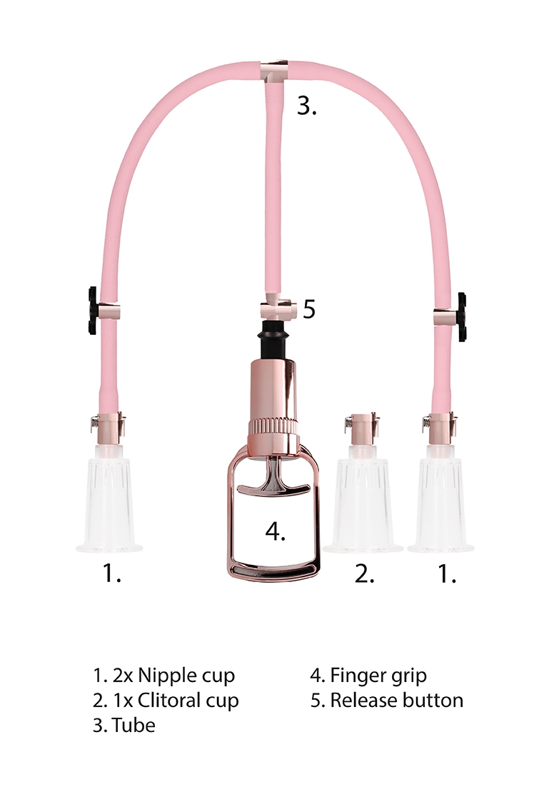 Diameter: 3,9cm, Diameter: 4,5cm, Inner diameter: 2,5cm, Inner diameter: 3cm, Insertable length: 5cmClitoral Cup – Length: 7,8cm, Insertable length: 5cmHose – Length connector to cup: 26,5cm, Length connector to fingergrip: 19,5cm, Nipple Cups – Length: 7,8cm
