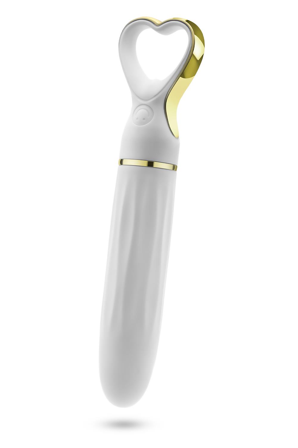 Cute, chic, and sophisticated, the Delice Heartthrob is a vibrator designed to indulge your senses. Its smooth, tapered tip delivers targeted, precise stimulation, with 10 versatile vibration modes—including 5 speeds and 5 patterns—to explore your pleasure, all at your fingertips. Crafted from premium, body-safe Puria® platinum-cured silicone with a luxurious UltraSilk® finish, Heartthrob feels irresistibly soft and gentle against the skin. The heart-shaped handle, accented with gold, adds a touch of elegance to your playtime. Splashproof and magnetic USB rechargeable, this vibrator ensures your pleasure is always within reach. Beautifully designed for solo indulgence or as a thoughtful gift, the lightweight and travel-ready Heartthrob is the perfect companion wherever passion may lead.
