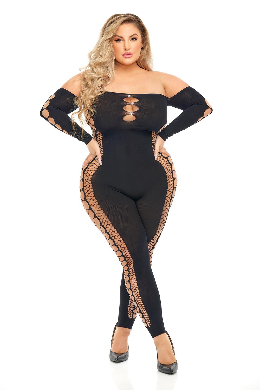 DIAMOND DRIPPIN BODYSTOCKING BLACK, QS