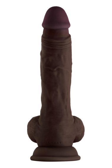 SHAFT MODEL A 9.5 INCH LIQUID SILICONE DONG WITH BALLS MAHOGANY