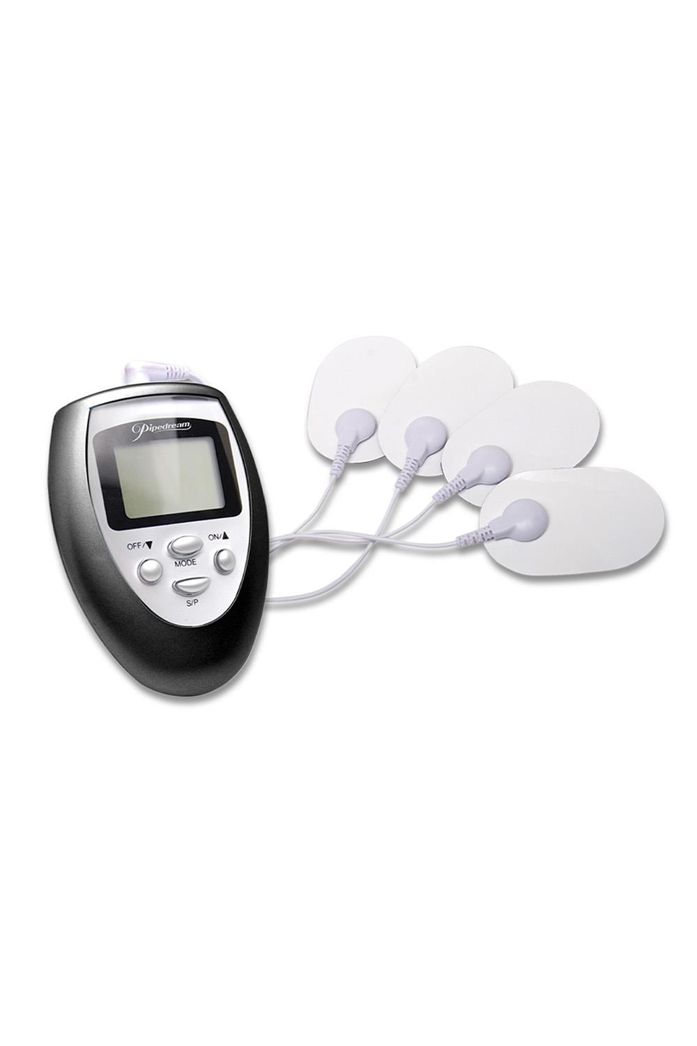 This electric stimulation Shock Therapy kit is perfect for first-timers and those new to e-stimulation. The easy-to-read LCD screen on the digital power control unit clearly displays the function and intensity level, and with 3 pre-programmed pulsation patterns to choose from, this attractive control unit sends electric impulses to whichever body part you place pad on.