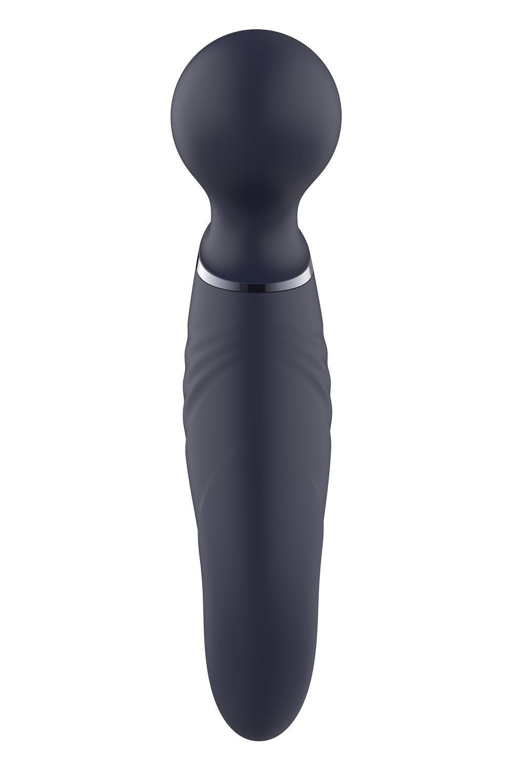 This Glam Dual Wand Vibe has 2 usable ends: the wand head on a flexible neck like all wand massagers have, and a curved G-spot vibrator on the other end. It features strong vibrations in 3 speeds an 7 rhythms, in both ends. Operation is easy with 2 separate buttons. The Glam dual wand vibrator is made of smooth and soft silicone and ABS. It has an IPX6 rating for water resistance and it’s rechargeable with the included USB cable.