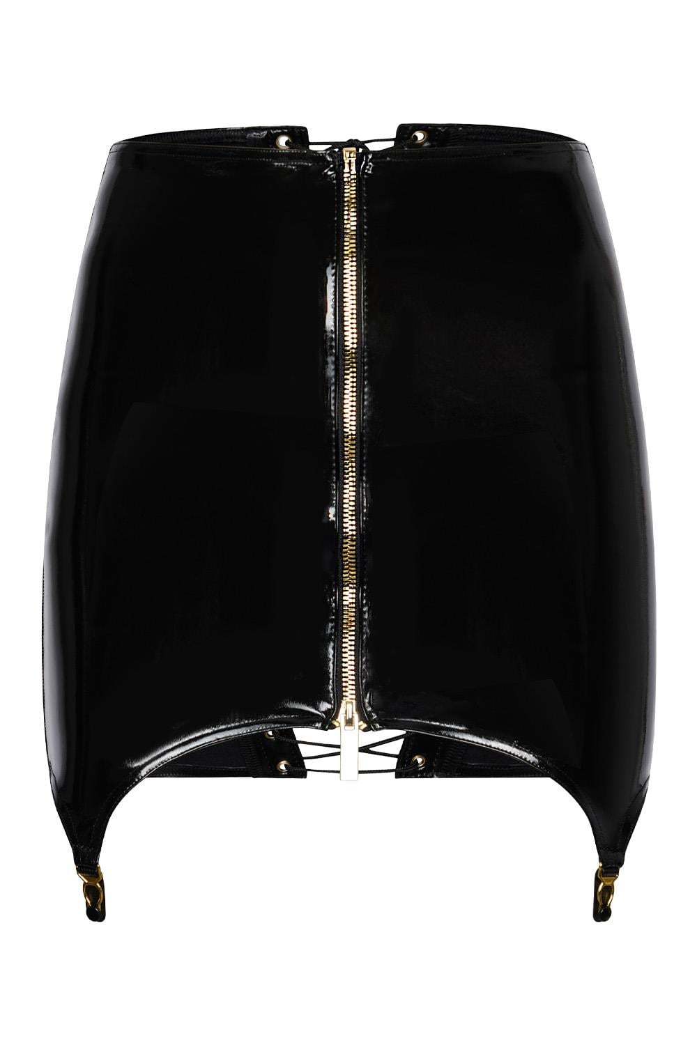 A gold-toned front zipper provides both style and seduction, offering a teasing reveal, while the lace-up back detail adds sensual drama and customizable fit. With a soft inner fabric for comfort and a figure-hugging shape, this skirt is perfect for customers who demand fashion that moves with them — and never goes unnoticed.