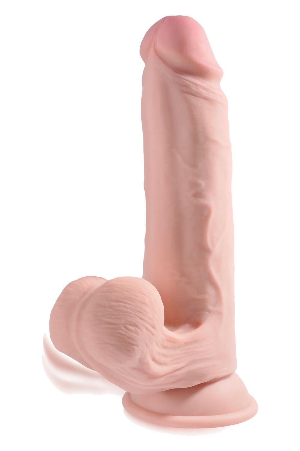 The 9″” King Cock® Plus Triple Density Cock with Swinging Balls is made of new and improved Fanta Flesh® material, making it stiff on the inside and soft on the outside.