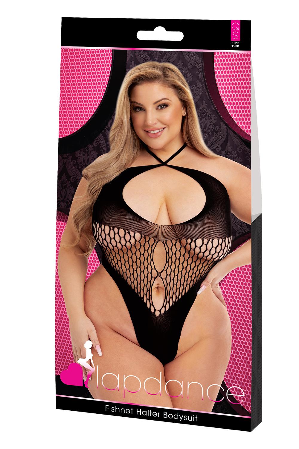 LAPDANCE FISHNET HALTER BODYSUIT BLACK, QS