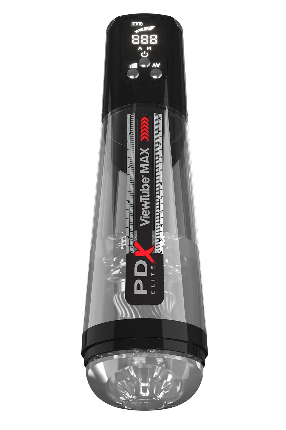 The PDX ELITE® VIEWTUBE MAX VIEW™ elevates masturbation with powerful intermittent sucking for the ultimate stroker experience. It’s a perfect storm of sensation for heightened solo sex sessions that can be customized to your personal moods! Get ready for explosive push-button cock-sucking, surrounding your penis with ultra-soft automatic sucking action! So what are you waiting for…Stick it in and view your cock magnifying to the MAX!