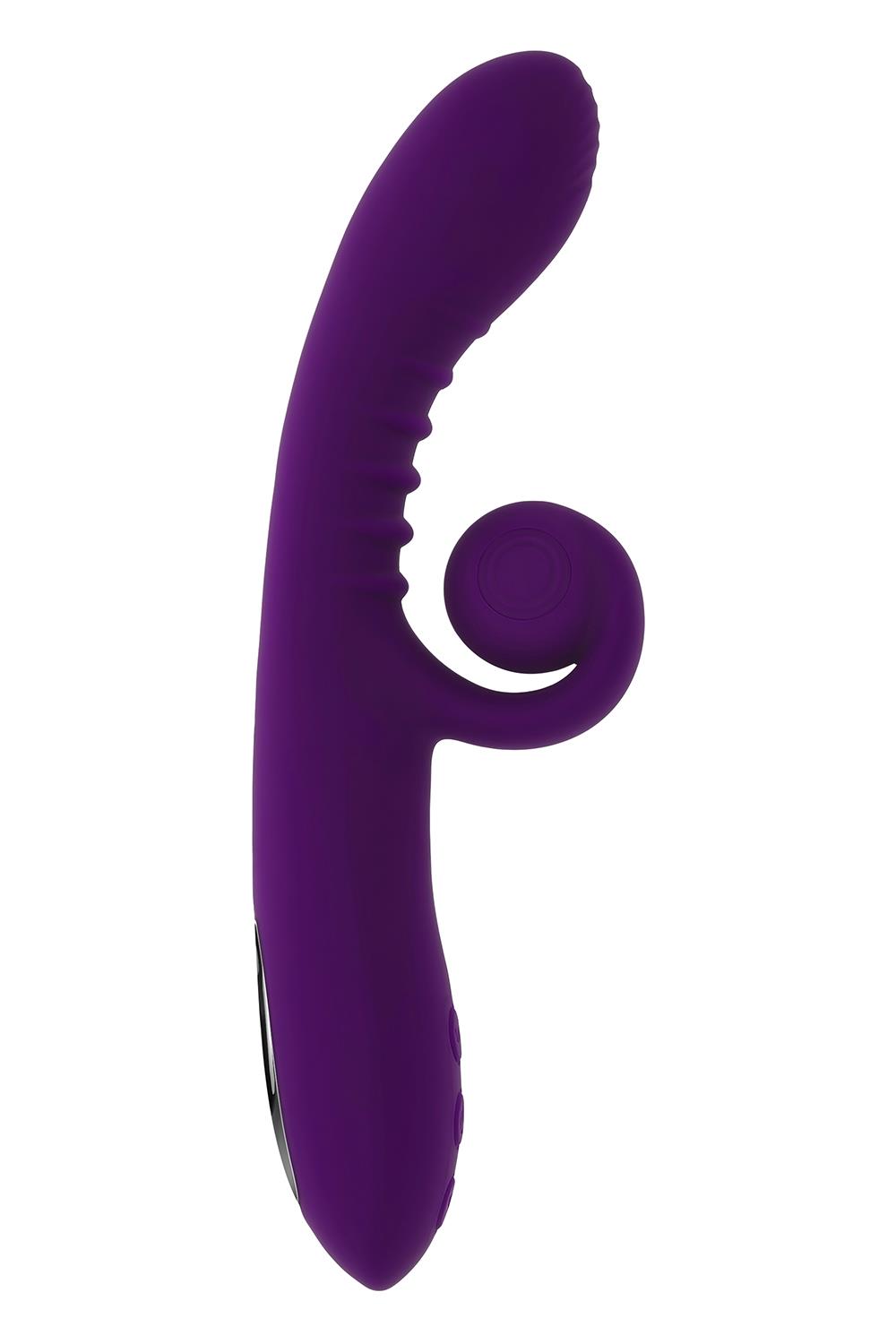 Curl up with this twist on the classic Rabbit Vibrator. The Curlicue lets the sensations unfurl as the springy, extendable spiral stays in constant contact with your clitoris while the main shaft delivers dynamic G-Spot stimulation, leading to powerful blended orgasms. Amp up the experience with multi-speed vibrations in two independently controlled motors and discover this truly extraordinary experience.