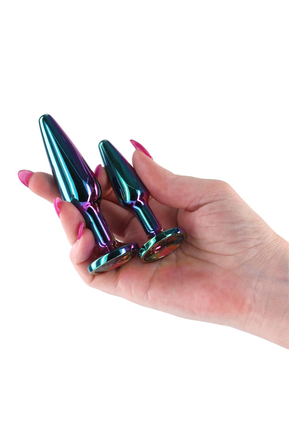 Lightweight, chrome-plated Anal toys designed for visual and sensual excitement. Made of lightweight Aluminum and shaped for effortless penetration, these body safe anal toys are available in a variety of colours, shapes and sizes. Suitable with all lubricants.