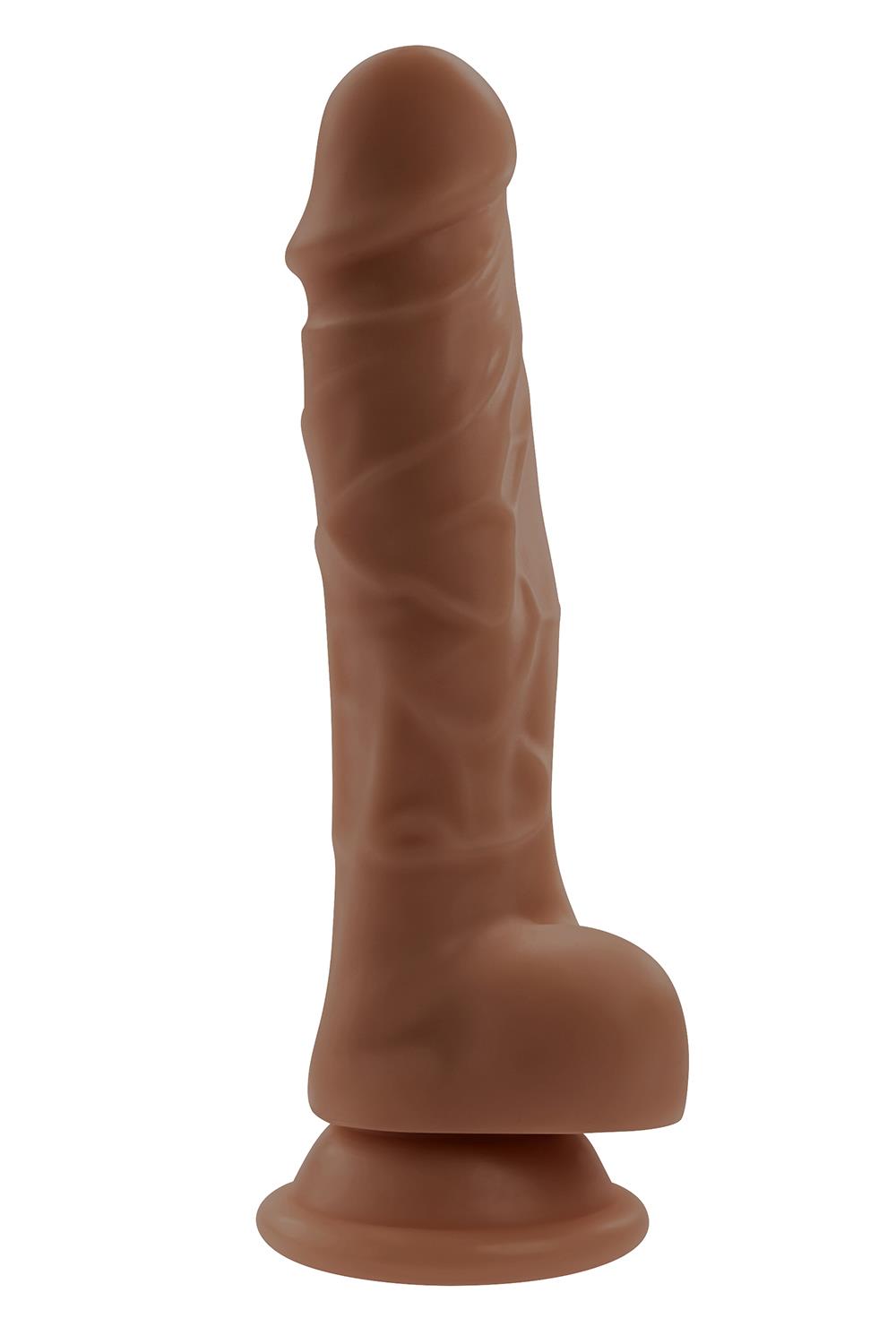 - Flexible, life-like dildo with suction cup