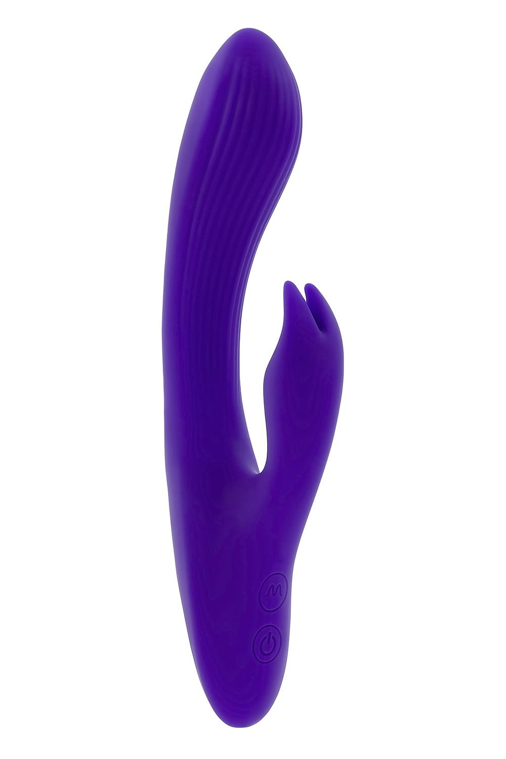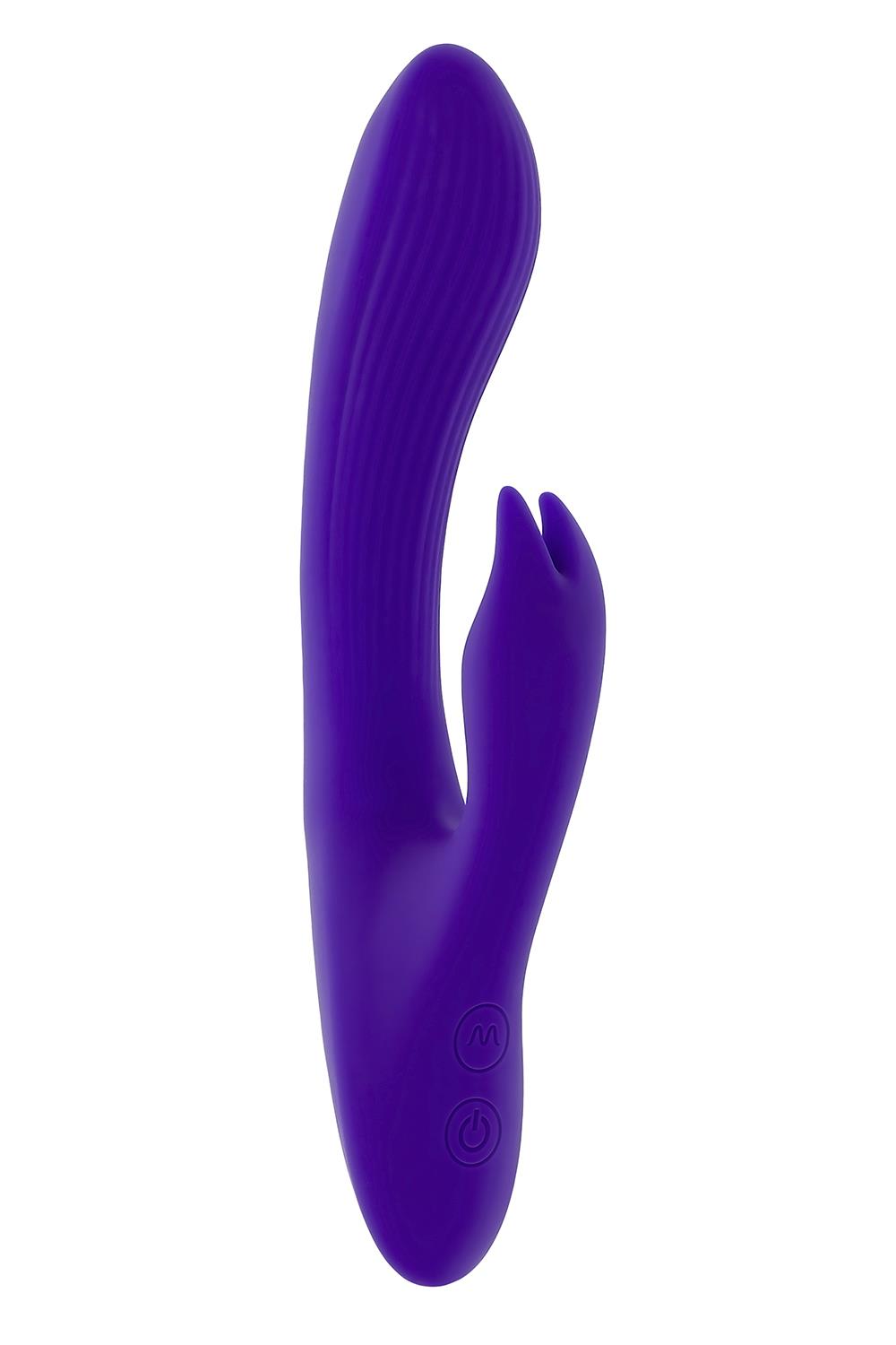 This big & powerful vibrating bunny stays where you put it with its textured, poseable main shaft and hard-working rabbit-eared stimulator.