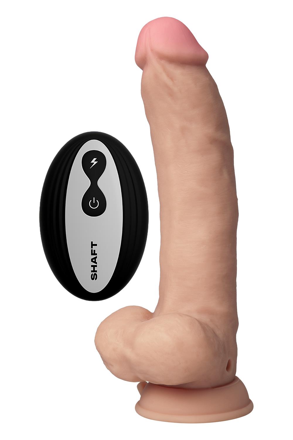 Discover a completely new realm of sensation. Sculpted to perfection from FLEXISKIN™️ liquid silicone outside and firm silicone on the inside, our vibrating collection is the next best thing to the real thing. You truly have to feel it to believe it. With 8 vibration modes, a wireless and waterproof remote, and a mind-blowing boost function, SHAFT ® redefines realism.
