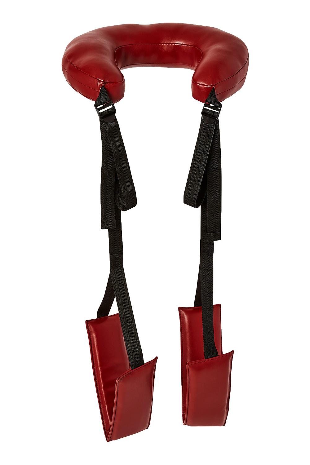 This easy-to-use sling allows you to stay in those perfect positions for the best angles of penetration! The soft neck and leg rests provide comfortable cushions as you recline, while the tethers use your own body weight to keep those thighs high and mighty. Neither you, nor you partner will have to hold those legs up with your hands anymore, leaving them free to roam to other body parts. Wrap the comfortable leg rests around your thighs, or put your feet in them like stirrups. With you legs pulled back, your partner will be able to reach greater depth and always hit the right spot, resulting in a more satisfying experience for both of you! The neck rest ensures that you have a better view than ever before.