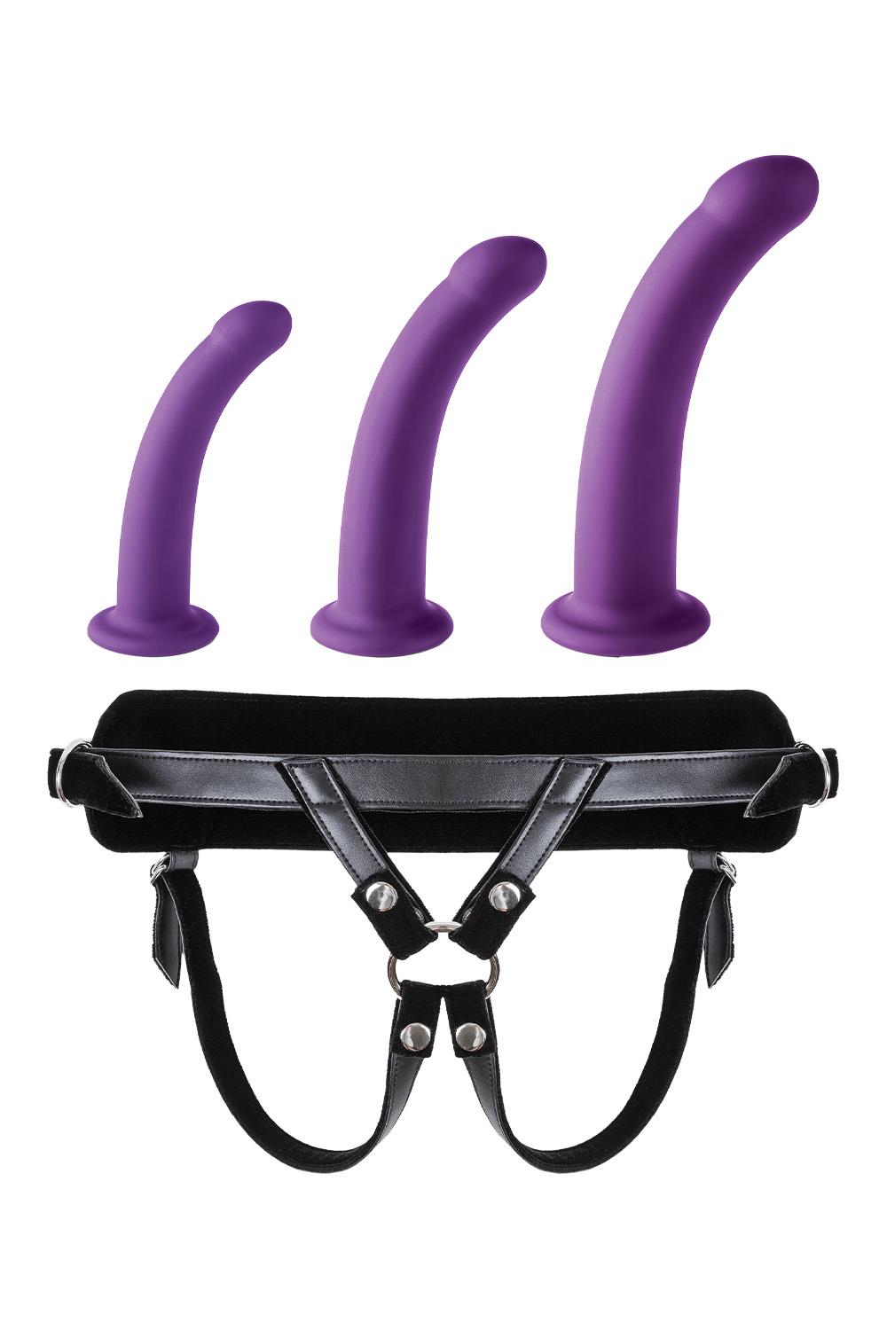 VIRGITE UNIVERSAL HARNESS WITH PURPLE DILDO SET SIZES S M L PURPLE