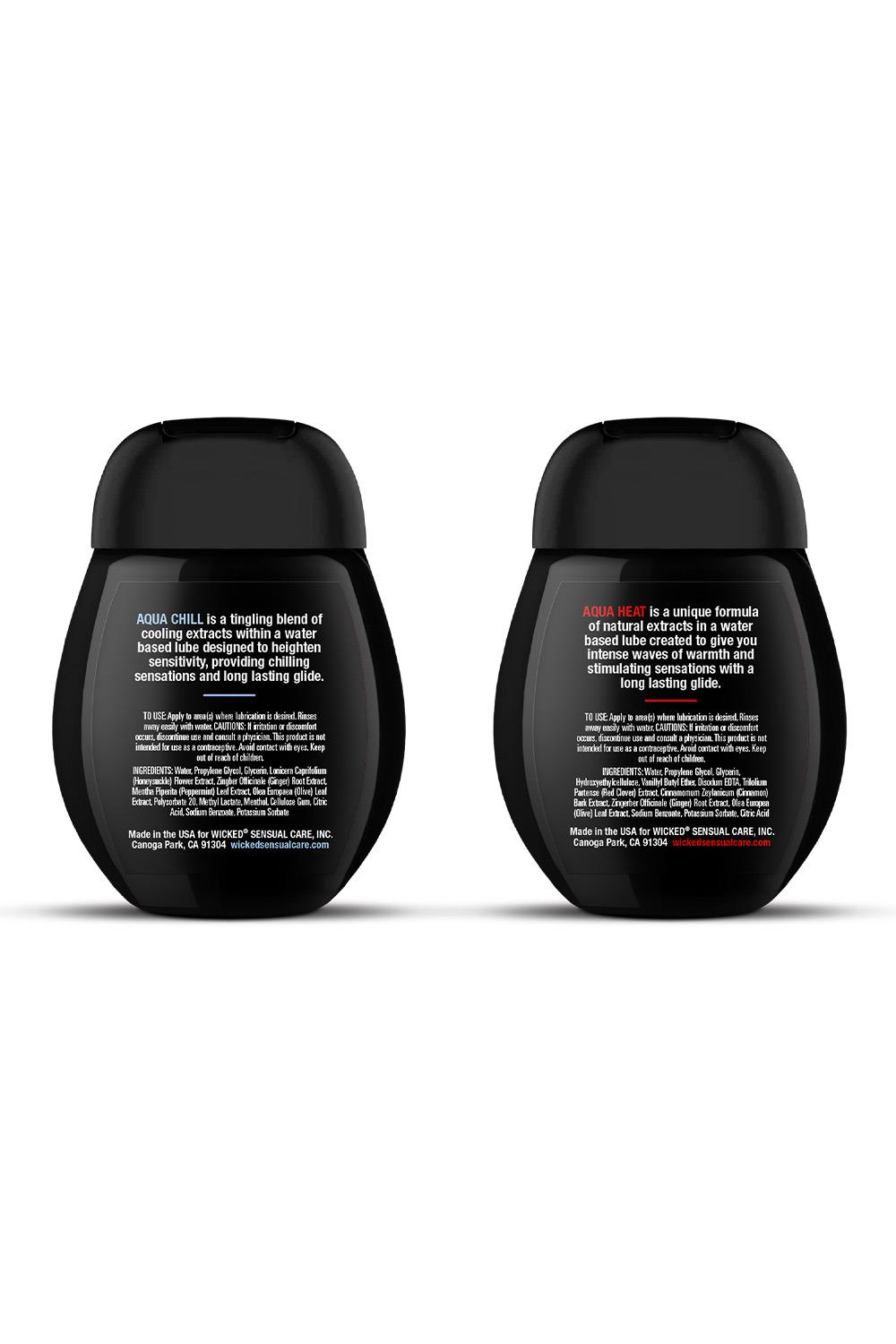 Keep it chill AND turn up the heat with this sensual Sensation Kit. Pairing Aqua Heat and Aqua Chill water based lubes, it is a great new way to explore intimacy with your partner.