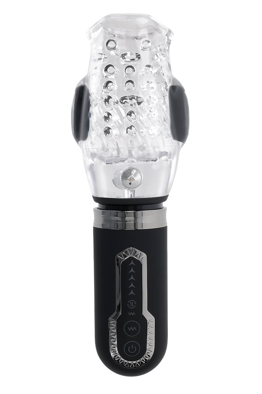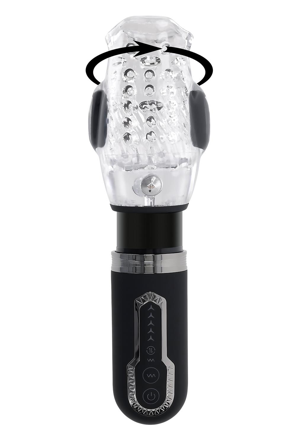 Experience the triple ecstasy of a thrusting, spinning, vibrating stroker. Grab the stylish matte handle and ease into the mouth-shaped entry that quickly envelopes you in a soft and stretchy, tight nubbed channel. Use the ergonomic control panel to operate each powerful motor separately, navigating between vibration, thrust and spin – or all three at once for the ultimate fantasy fulfillment.